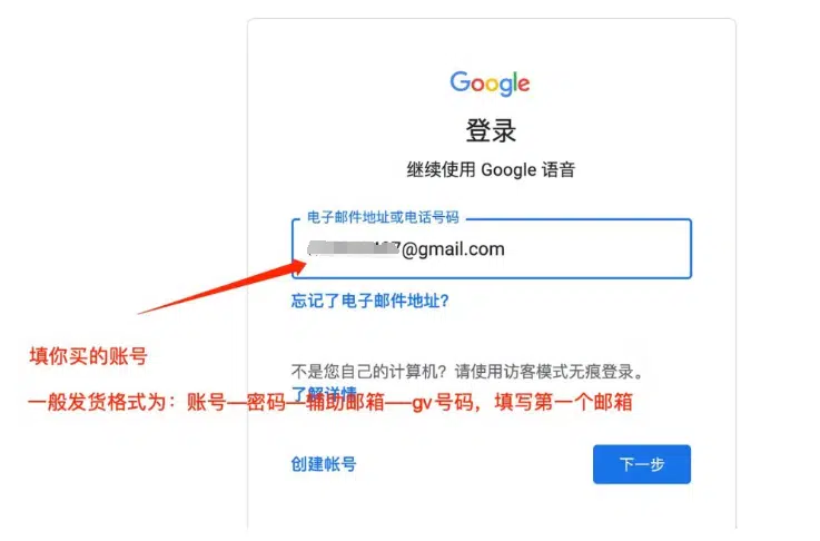 输入Google Voice账号密码
