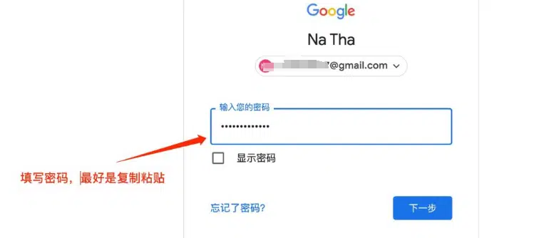 输入你收到的Google账号的用户名和密码,然后点击”下一步”按钮。