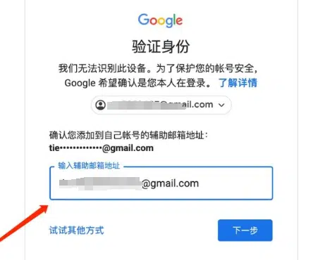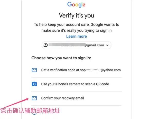 如果出现验证辅助邮箱的提示,请选择第三个选项:”确认辅助邮箱”,然后输入辅助邮箱即可登录。